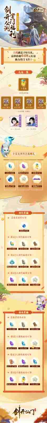 游戏为大家准备了海量的福利,,,包括上线即可获得的全渠道预约礼包、、、、十连抽等福利,,,输入密令“JK666”、、、“JK888”即可领取紫色弟子,,达到金丹期后还有功法宝箱可领,,,,助力全宗上下实力提升……所有奖励总价值超过648元,,,,而邀请好友一起体验,,,更可以获得额外的奖励哦~