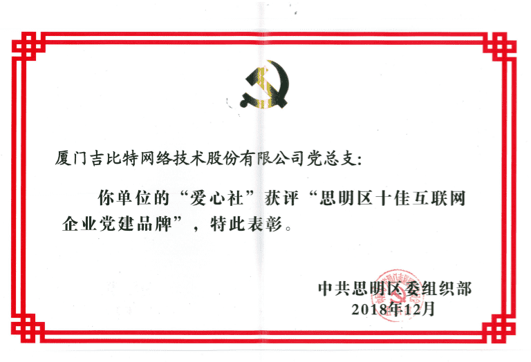 经初审评选、、、网络评选和专家评审等环节,,,,"厦门亚星管理网络技术股份有限公司党总支-爱心社" 从全区28个参评党建品牌中脱颖而出,,获评"思明区十佳互联网企业党建品牌"。。